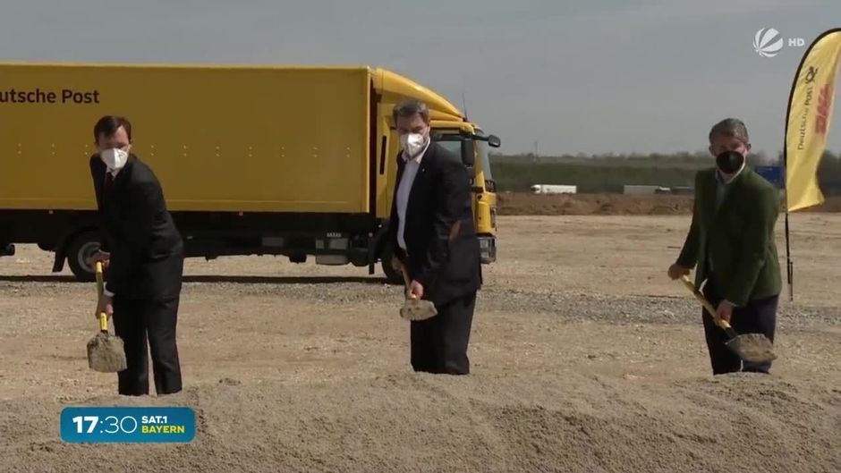 In Aschheim bei München entsteht der größte Paketstandort Deutschlands. Ministerpräsident Markus Söder und DHL-Konzernvorstand Tobias Meyer haben den offiziellen Spatenstich vorgenommen.