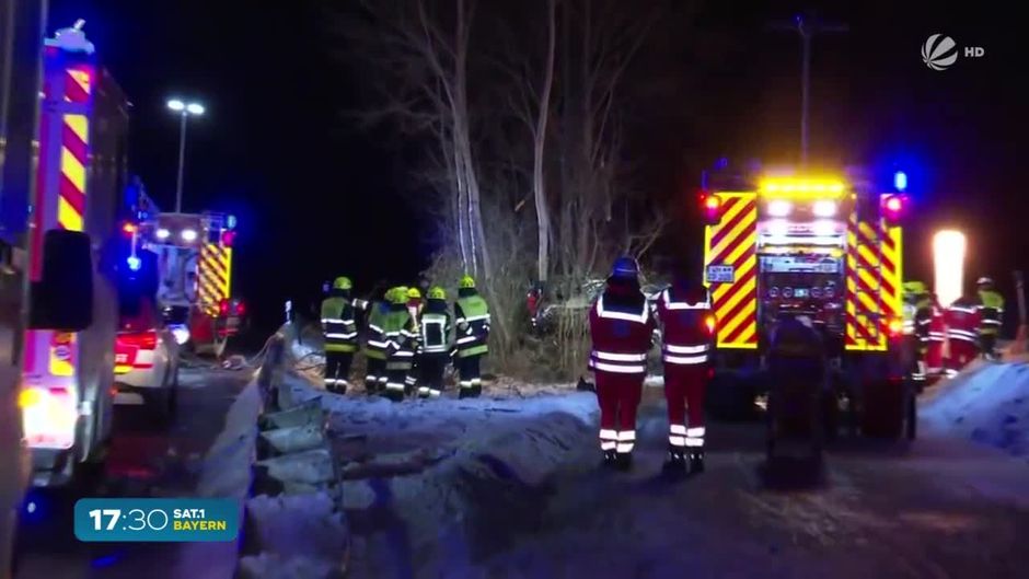 Auto hängt zwischen Bäumen: Verkehrs-Chaos in Bayern