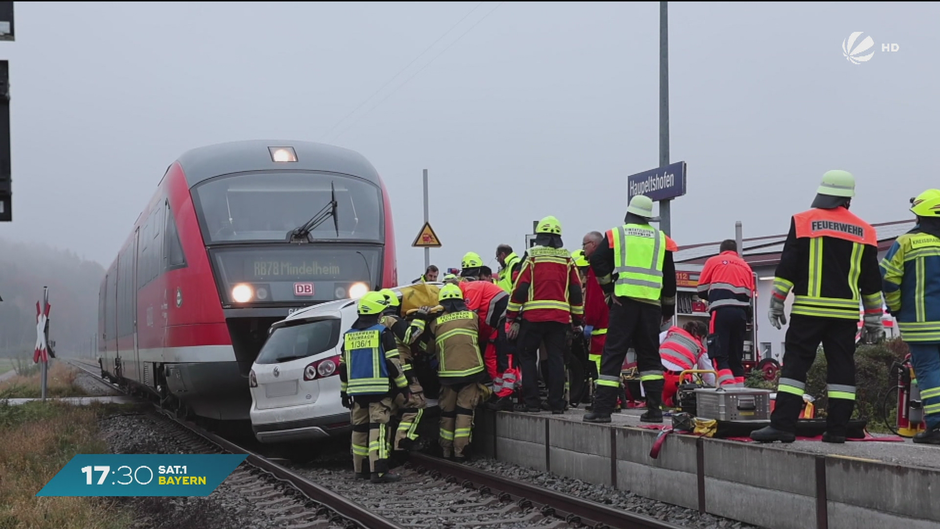 Auto kollidiert mit Zug - Unfall in Haupeltshofen im Landkreis Günzburg am Donnerstagmorgen. Ein 18-jähriger Fahrer übersah einen Zug und wurde mit schweren Verletzungen isn Krankenhaus gebracht.