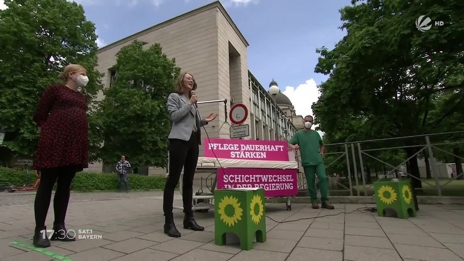 Bayerns Grüne haben heute vor der Staatskanzlei in München für eine bessere Pflegepolitik demonstriert. Das sind die genauen Forderungen.