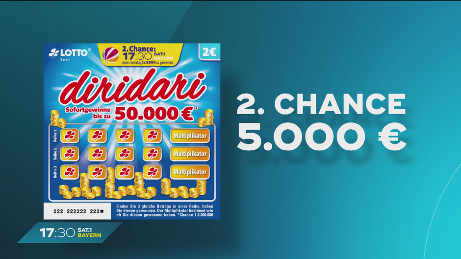 Die Diridari-Ziehung der zweiten Chance von Lotto Bayern in 17:30 SAT.1 Bayern. Das sind die Gewinnerinnen und Gewinner.