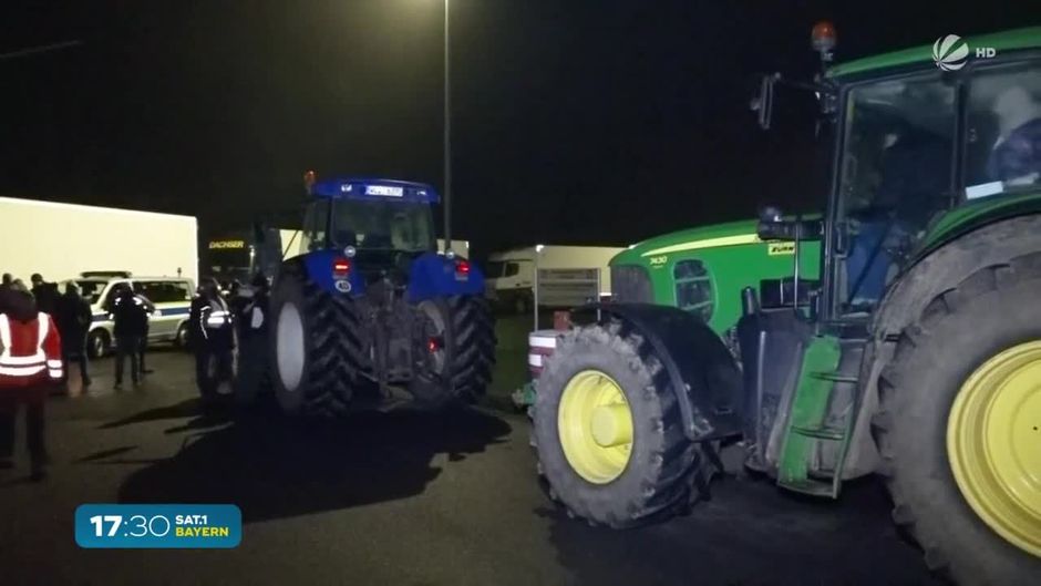 Im unterfränkischen Helmstadt haben Landwirte das Aldi-Zentrallager mit rund 90 Traktoren versperrt. Das fordern Bayerns Bauern: