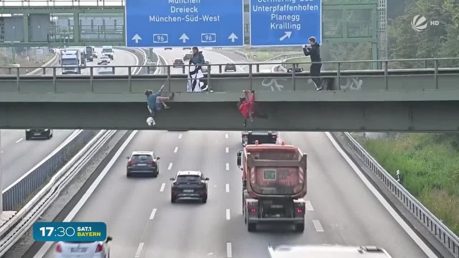 Neun Gegner der IAA bleiben bis zum Messeende in Gewahrsam der Polizei. Die Aktivisten hatten sich von Autobahnbrücken rund um München abgeseilt. Einsatzkräfte mussten die Fahrbahnen stundenlang sperren.