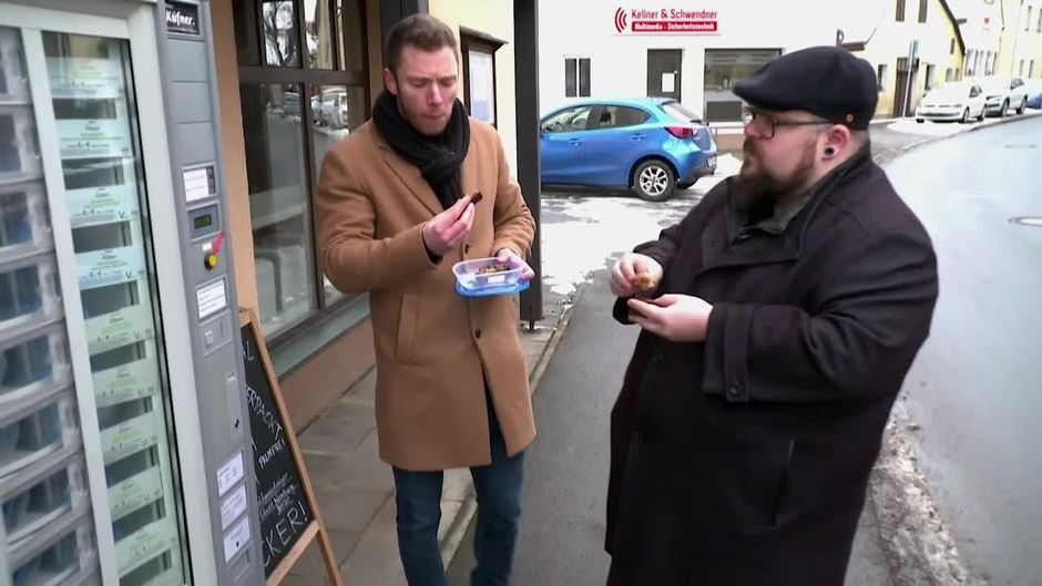 Die beiden Feinschmecker aus Franken Phil und Fabio testen für ihren Internet-Blog allerlei Restaurants und Spezialitäten. In Lockdown-Zeiten heißt es aber: Essen aus dem Automaten. Wie fällt die Bewertung der Gourmet-Kritiker aus?