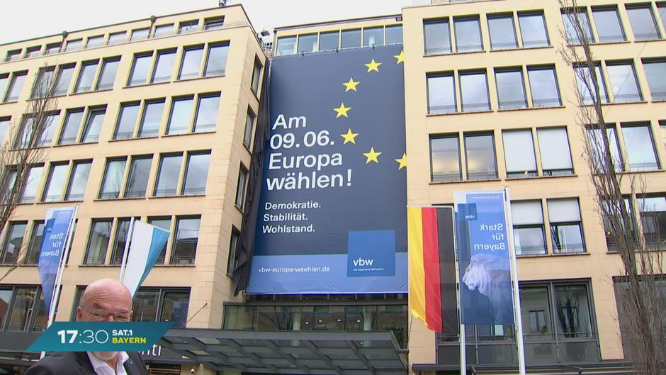 Es geht um Frieden, Wohlstand und Klimaschutz - die Vereinigung der Bayerischen Wirtschaft (vbw) hat heute ein Banner zur Europawahl enthüllt. Sie weist damit auf die Europawahl im Juni hin und ruft zur Stimmabgabe auf.