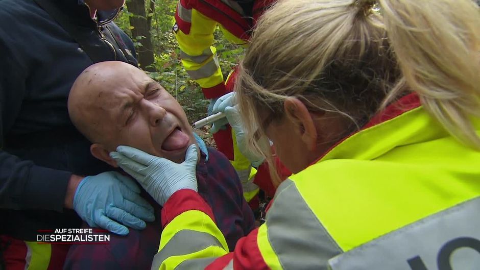 Nach dem Eintreffen der Rettungskräfte kümmern sich die Spezialisten zunächst um Epileptiker Robert.