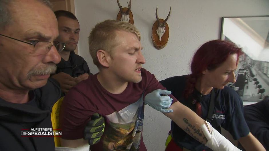 Die Beamten werden gerufen, da ein junger Mann mit seinem Arm in einem Briefkastenschlitz feststeckt. Das alles soll sich später als versuchter Einbruch herausstellen.