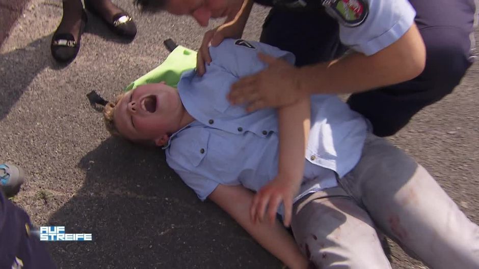 Die Beamten werden zu einer Schule gerufen. Sie finden einen Jungen mit einer Schussverletzung im Bein. Was ist passiert?
