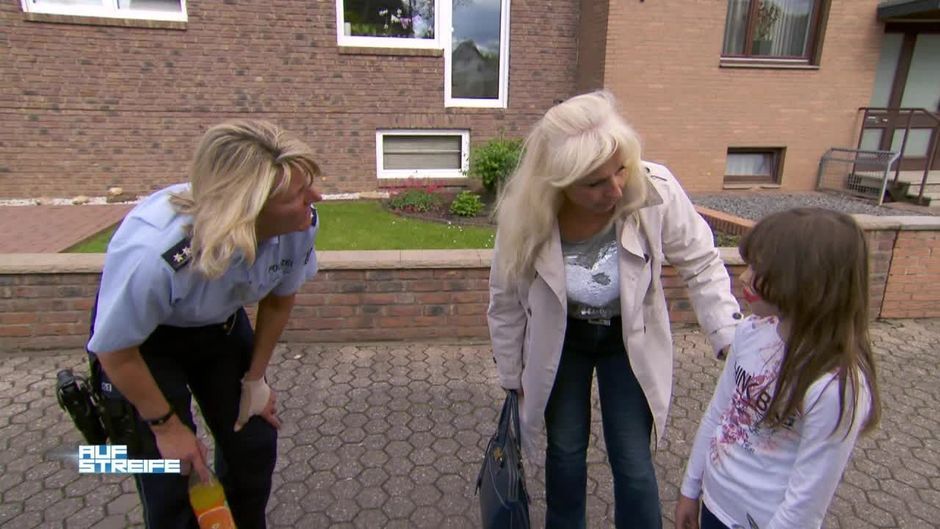 Ein kleines Mädchen läuft auf den Streifenwagen zu und benötigt offensichtlich Hilfe, denn sie ist nicht wirklich ansprechbar.