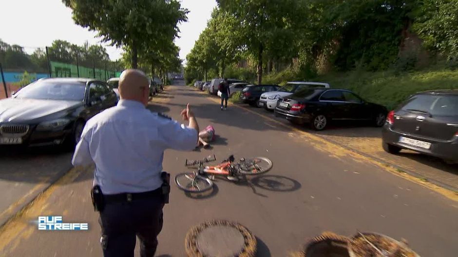 Eine Hausfrau stürzt mit ihrem Fahrrad, weil ein Gulli offenliegt. Ein 19-Jähriger sitzt neben ihr...