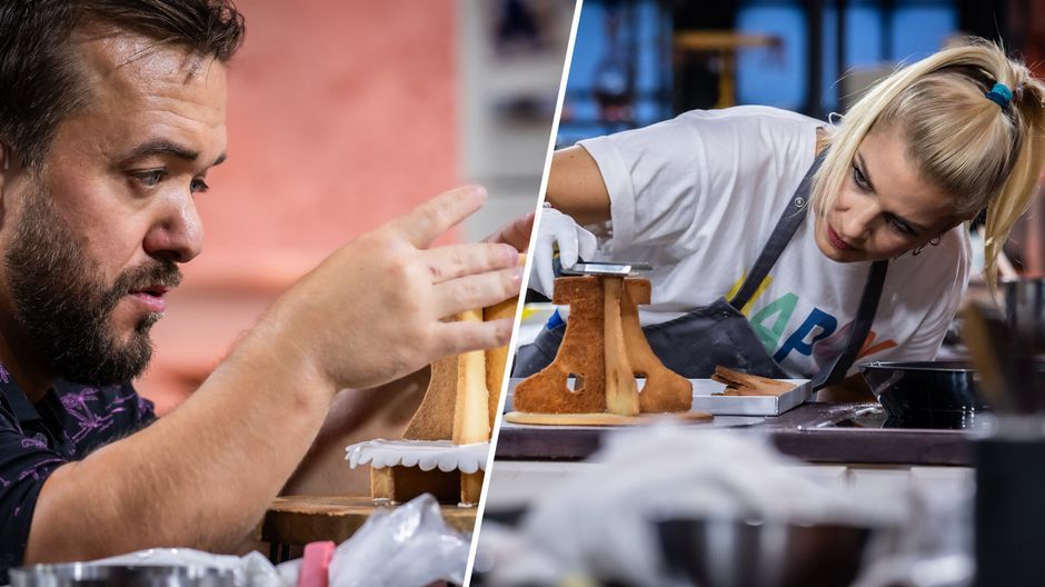 Neben leckeren Plätzchen-Kreationen fordern die Keks-Etageren ein Händchen für Statik von den Hobbybäcker:innen von "Das große Promibacken" 2024. Denn am Ende müssen alle stehen bleiben! Doch beim Kleben zeigt sich, dass das gar nicht so einfach ist...