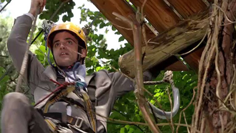 Mick und Andreas liefern sich ein kleines Wettrennen im Klettergarten...