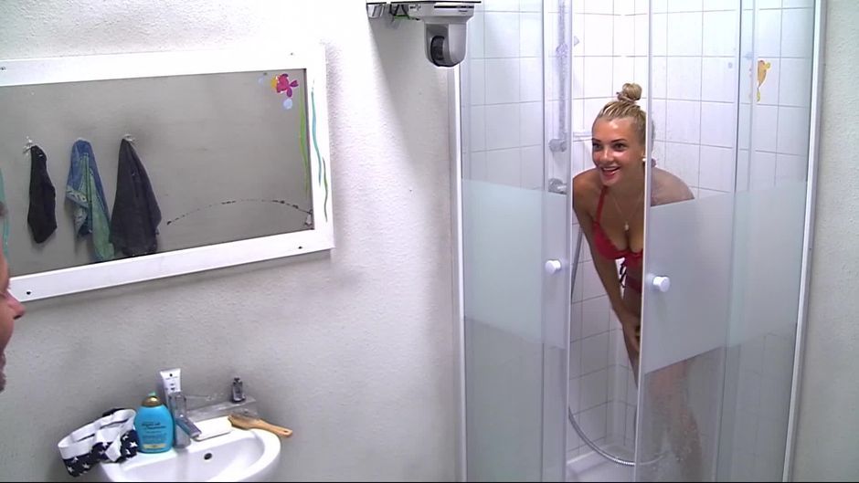 Während Evelyn unter der Dusche steht, ist sie nicht alleine im Bad. Auch Willi Herren ist dabei. Und der genießt die Aussicht in vollen Zügen.
