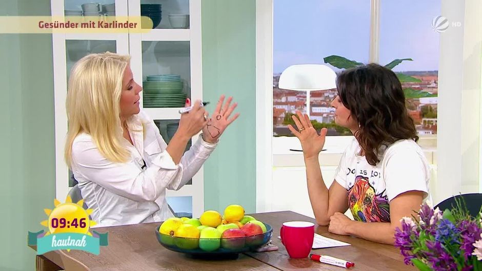 Die Handreflexzonen-Massage kann bestimmte Leiden, wie zum Beispiel Rückenbeschwerden lösen. Unsere Gesundheitsexpertin Charlotte Karlinder erklärt, wie die Massage funktioniert und welche speziellen Punkte man mit dem Daumen drücken muss.