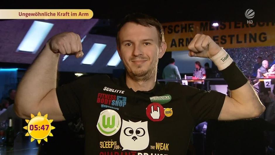 Matthias ist der stärkste Armwrestler Deutschlands. Und hat einen Superarm...