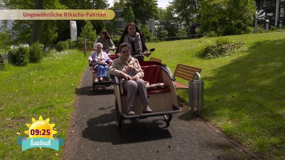 Viele ältere Menschen haben Probleme beim Laufen, deswegen bewegen sie sich in einem kleinen Radius. Dafür soll jetzt Abhilfe geschaffen werden! Die beiden Ehrenamtlichen Nathalie und Caroline fahren ihre älteren Mitbürger mit der Rikscha durch die Gegend.