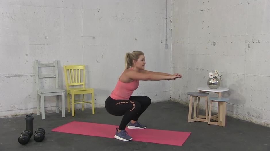 Die klassische Kniebeuge gehört nicht zum alten Eisen, sondern ist eine effektive Übung für Beine und Po. Allerdings sollte sie unbedingt sauber ausgeführt werden. Sophia Thiel zeigt, wie es richtig gemacht wird.