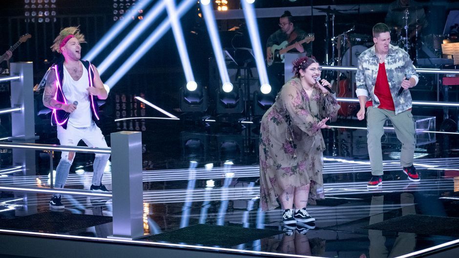 Samu entfesselt Metal-Power auf der Bühne! Er schickt Iman, Chris und Raphael in den Battle-Ring. Gemeinsam performen sie "Psychosocial" von Slipknot. Das Publikum und die Coaches rasten völlig aus, denn die drei reißen mit ihrem Auftritt die Hütte ab.
